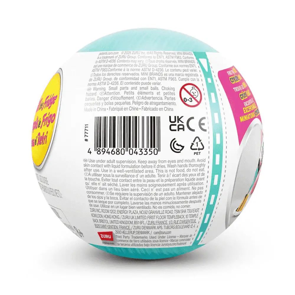 ¿Qué es? Cápsula sorpresa Mini Brands con miniaturas de productos de supermercado para “llenar la nevera”. Abre la bola y descubre pequeñas réplicas de alimentos y bebidas en formato mini. Contenido surtido mostrado a modo de ejemplo en el packaging. Perfecto para jugar a las tiendas, organizar tu “frigo” en miniatura y coleccionar. Ideas de juego: Crear tu lista de la compra, clasificar minis por categorías y montar un supermercado en casa. Con Mini Brands Fill the Fridge Mini Minis, ¡obtendrás un detalle increíble y tus marcas favoritas! Con más de 60 objetos coleccionables por descubrir, encontrarás de todo, desde tus aperitivos favoritos hasta utensilios de cocina clásicos, ¡todo en forma de adorables mini! Cada cápsula contiene incluso un mini sorpresa. ¿Cuál vas a abrir?